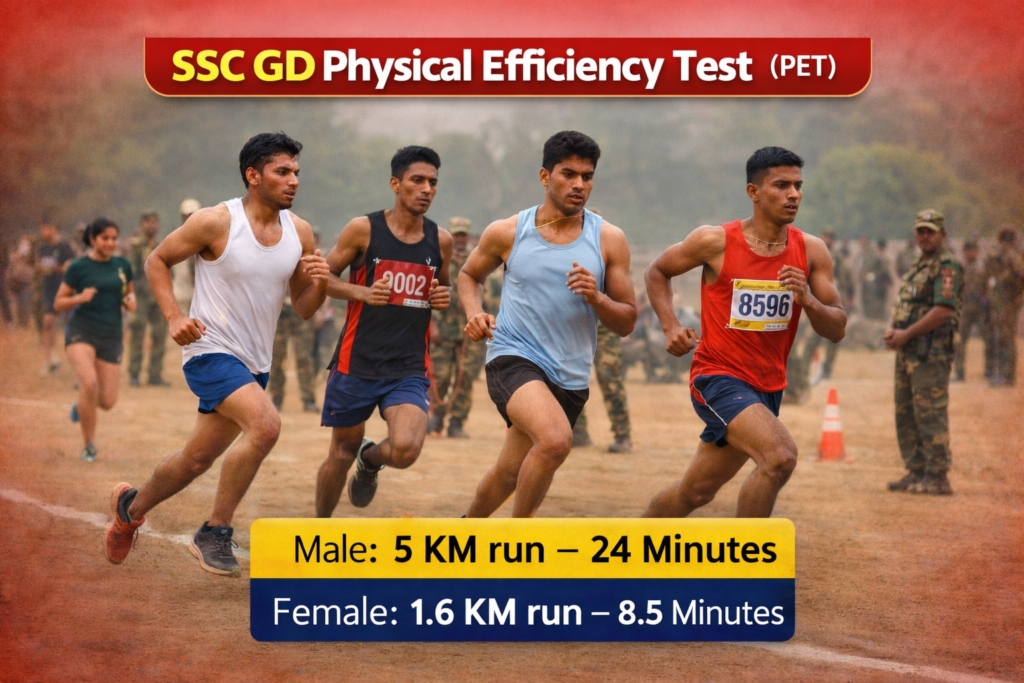 SSC GD Constable भर्ती परीक्षा में लिखित परीक्षा के बाद सबसे महत्वपूर्ण चरण होता है Physical Test (PET & PST)। बहुत से उम्मीदवार लिखित परीक्षा पास करने के बावजूद सिर्फ फिजिकल टेस्ट की तैयारी सही न होने के कारण बाहर हो जाते हैं।
